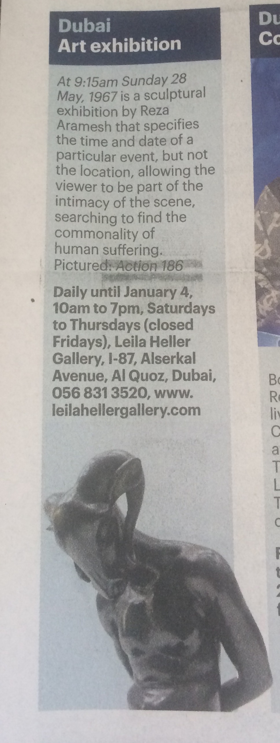 Leila Heller Gallery is pleased to present At 9:15 am Sunday 28 May 1967, Reza Aramesh’s second solo exhibition with the gallery. In titling this exhibition, Aramesh specifies the time and date of a particular event – leaving out the location. His choice of deliberate geographical ambiguity invites the viewer to be part of the intimacy of the scene, searching to acknowledge the commonality of human suffering whilst immortalizing an event or Action, as Aramesh titles them, of unnamed rebellious subjects.